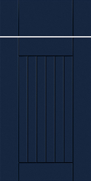 - 5/8″ Thick Flat Panel Door: The Daytona door features a 5/8″ thick flat panel with a routed extended style and a cottage-inspired center panel design. The solid color-through finish ensures durability and resists fading, maintaining its vibrant look even with frequent use.