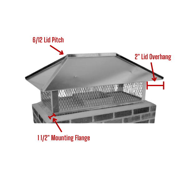 This top mount chimney cap with a Hip and Ridge Lid offers a durable and visually appealing solution for your chimney. Constructed from high-quality 304L stainless steel, it provides robust protection against common chimney issues like critters, rain, snow, debris, and long-term deterioration. The stylish Hip and Ridge lid is designed with a 6/12 pitch, ensuring optimal drainage and protection from the elements, while the 2″ lid overhang adds extra defense.