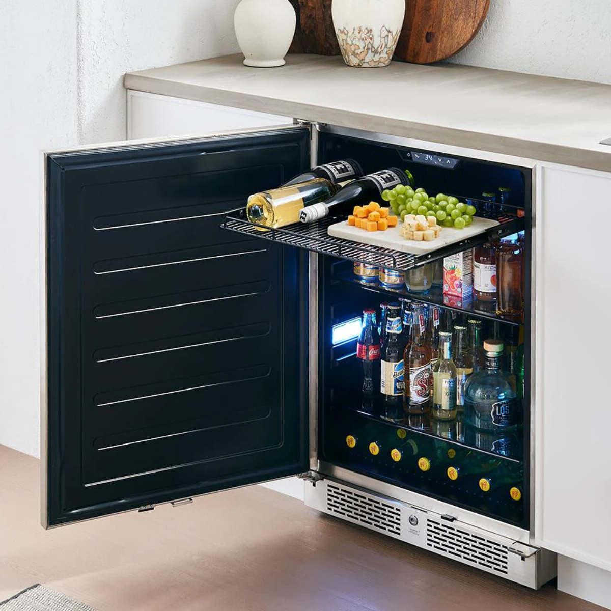 Entertain throughout the seasons with the Presrv Outdoor Beverage Cooler. Built with corrosion-resistant 304 grade stainless steel, this cooler is durable enough for outdoor use. Includes a Full-Extension Wire Rack to hold your favorite craft brew or prepped veggies for the grill. Also featuring PreciseTemp temperature control to maintain accurate temperatures and Active Cooling Technology to ensure even cooling.